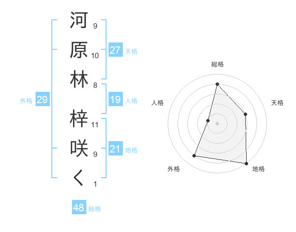 河原林 梓咲くさんの総格は48画の4点!