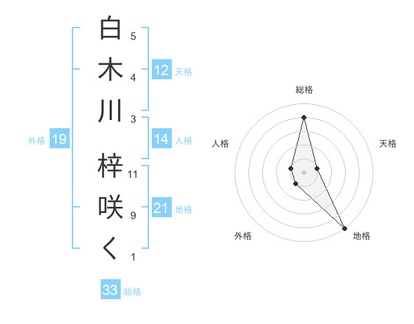 白木川 梓咲くさんを姓名の画数から五運を鑑定