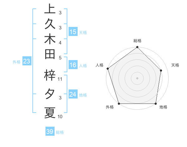 上久木田 梓夕夏さんを姓名の画数から五運を鑑定