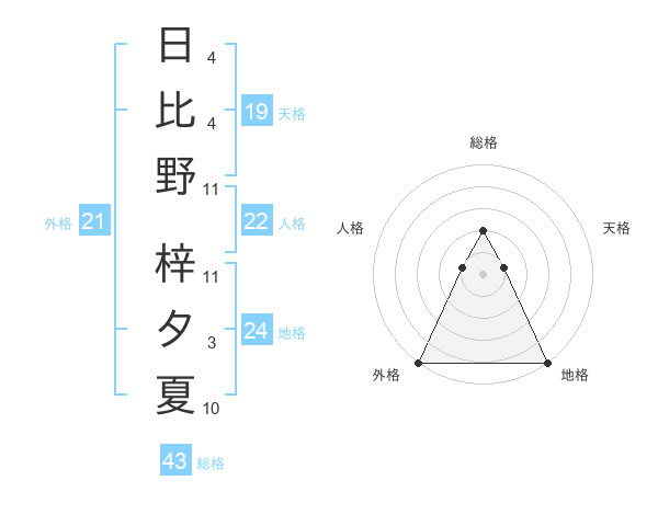 日比野 梓夕夏さんを姓名の画数から五運を鑑定