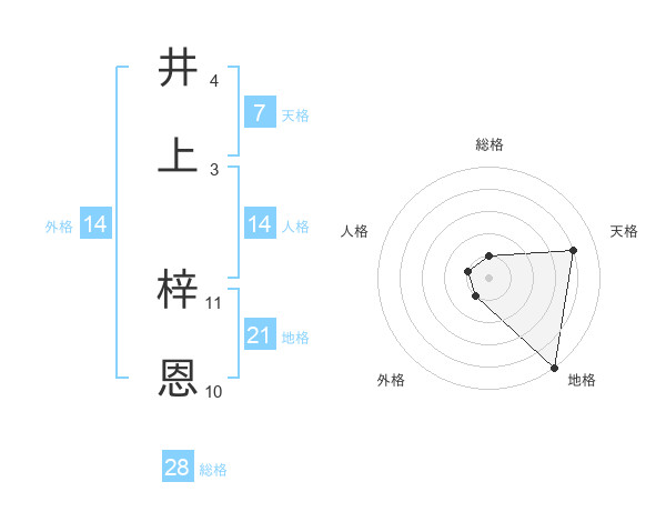 井上 梓恩さんを姓名の画数から五運を鑑定