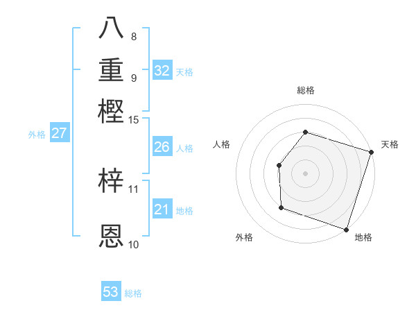 八重樫 梓恩さんを姓名の画数から五運を鑑定