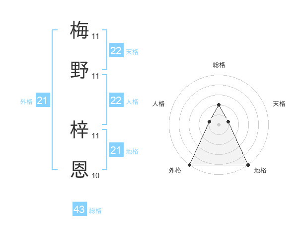 梅野 梓恩さんを姓名の画数から五運を鑑定