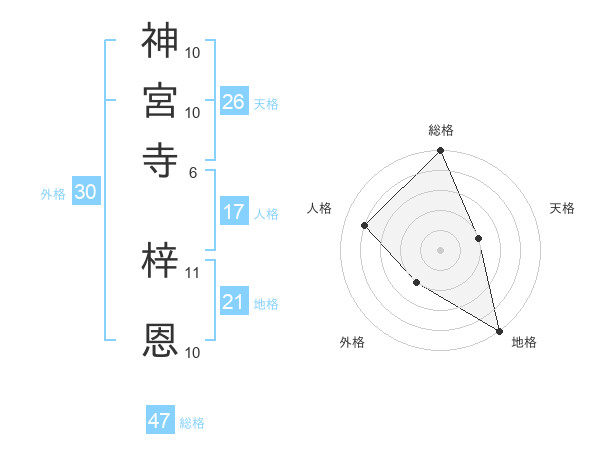 神宮寺 梓恩さんの総格は47画の5点!