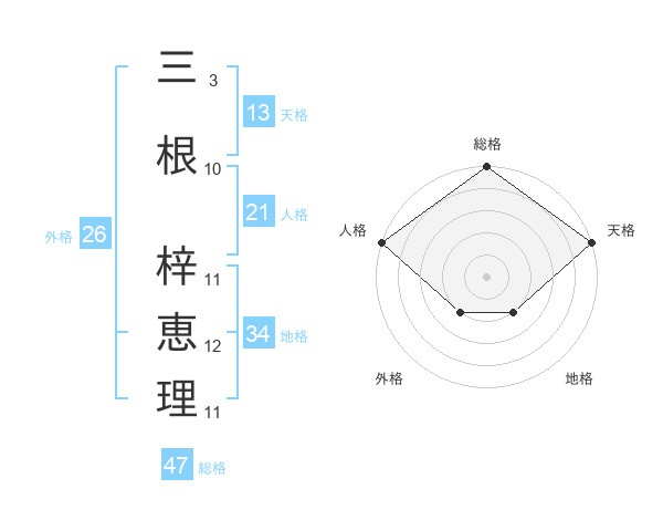 三根 梓恵理さんを姓名の画数から五運を鑑定