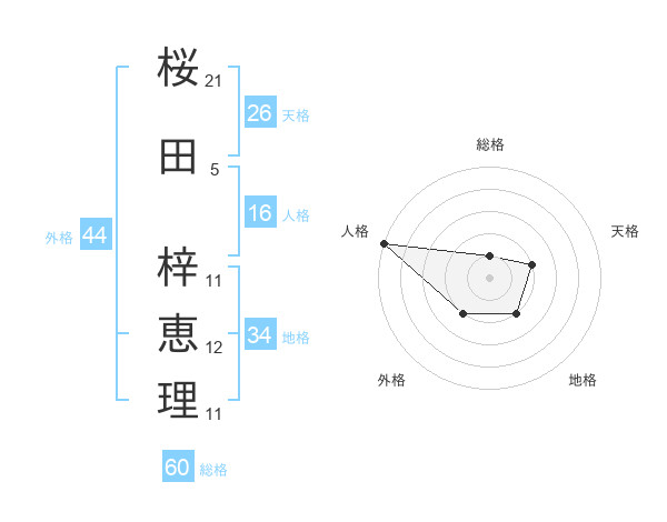 桜田 梓恵理さんを姓名の画数から五運を鑑定