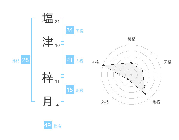 塩津 梓月さんを姓名の画数から五運を鑑定