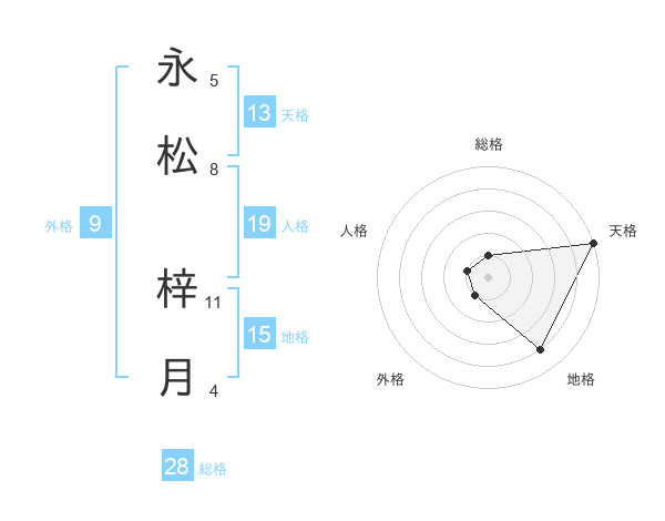 家系が持つ宿命的な運勢を表します。祖先から受け継いだ苗字ですので自分の力が及びません。家柄を象徴します。