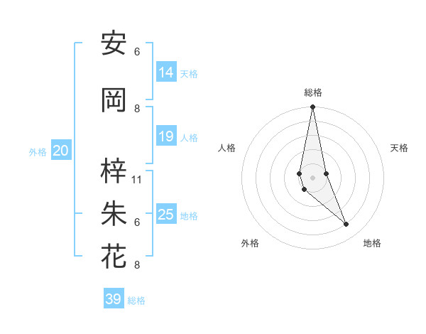 安岡 梓朱花さんの総格は39画の5点!