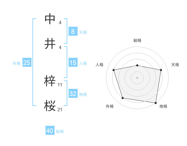 中井 梓桜さんを姓名の画数から五運を鑑定