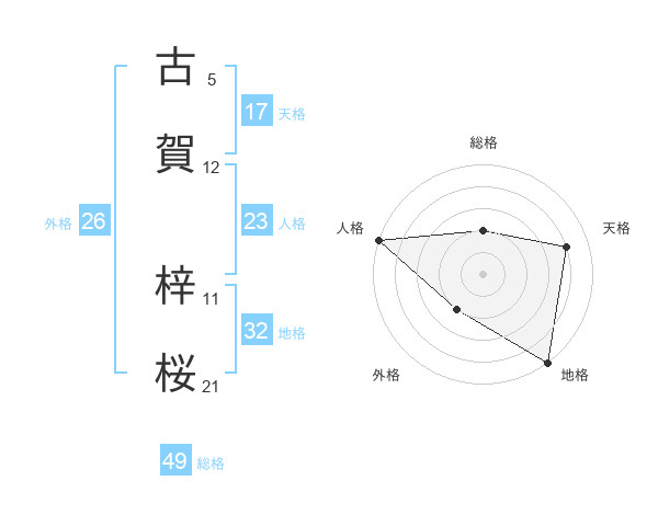 古賀 梓桜さんを姓名の画数から五運を鑑定