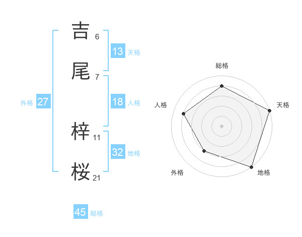 吉尾 梓桜さんを姓名の画数から五運を鑑定