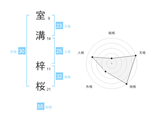 室溝 梓桜さんの総格は55画の1点!