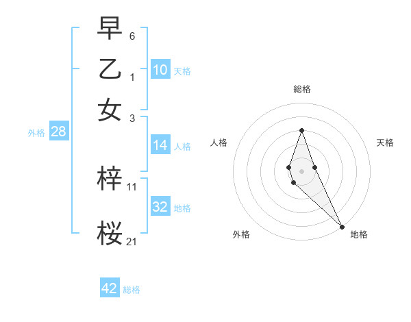 早乙女 梓桜さんを姓名の画数から五運を鑑定