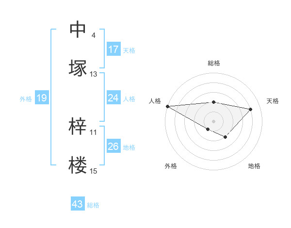 中塚 梓楼さんを姓名の画数から五運を鑑定