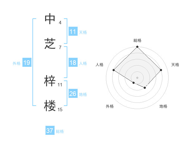 中芝 梓楼さんの総格は37画の5点!