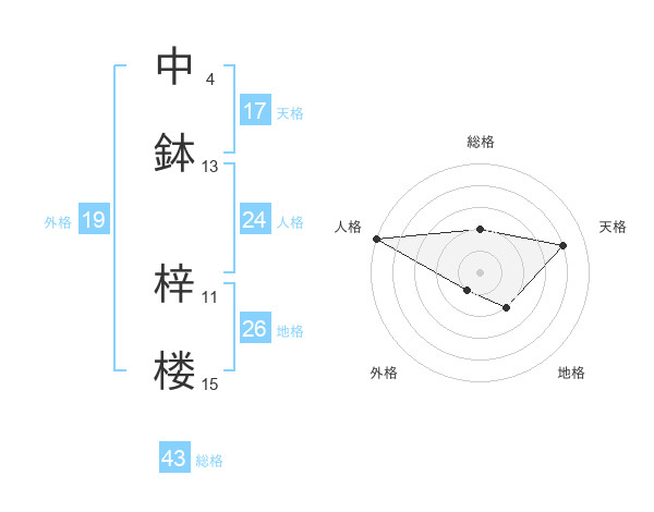 中鉢 梓楼さんを姓名の画数から五運を鑑定