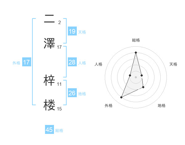 二澤 梓楼さんを姓名の画数から五運を鑑定