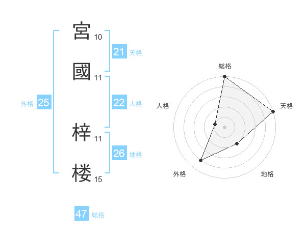 宮國 梓楼さんを姓名の画数から五運を鑑定