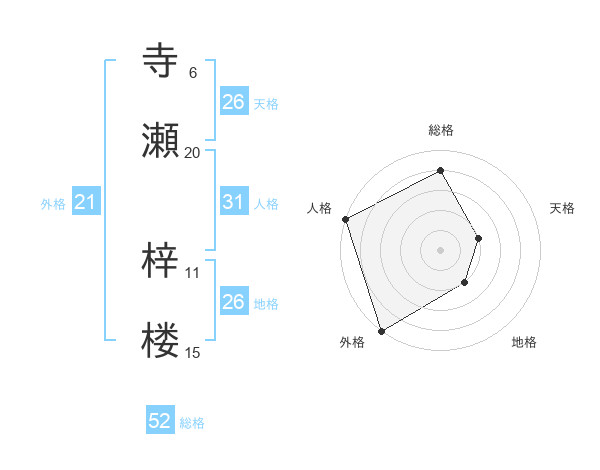 寺瀬 梓楼さんの総格は52画の4点!