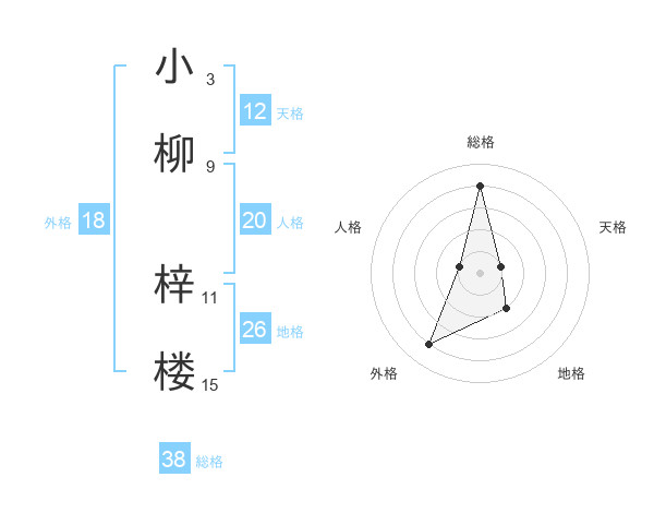 小柳 梓楼さんの総格は38画の4点!