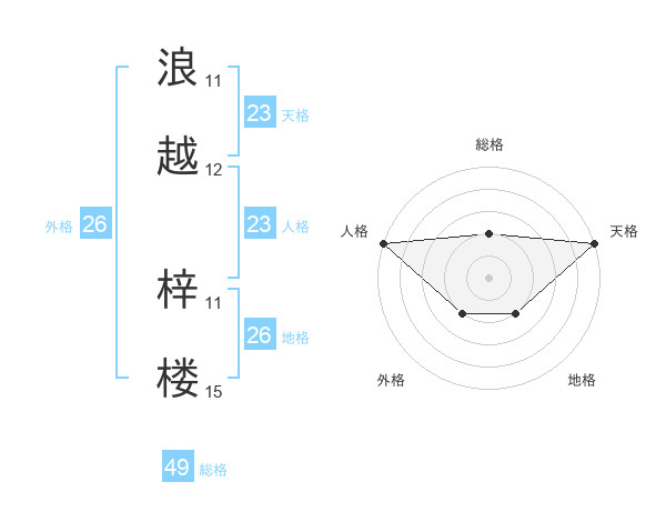 浪越 梓楼さんの総格は49画の2点!