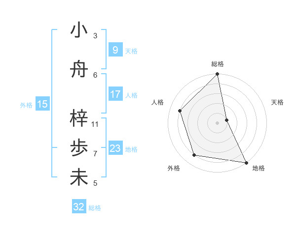 小舟 梓歩未さんの総格は32画の5点!
