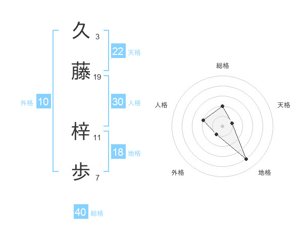 久藤 梓歩さんを姓名の画数から五運を鑑定