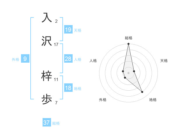 入沢 梓歩さんの総格は37画の5点!