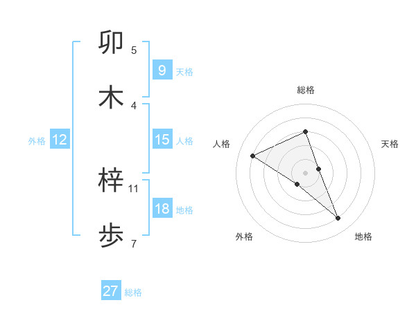 卯木 梓歩さんの総格は27画の3点!