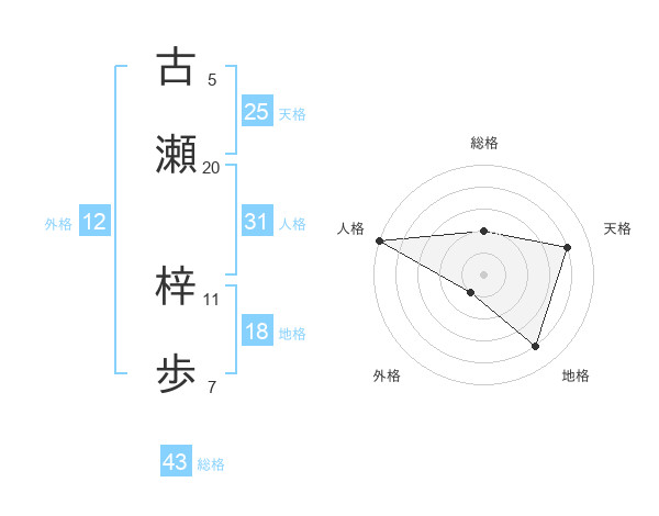 古瀬 梓歩さんの人格は31画の5点!
