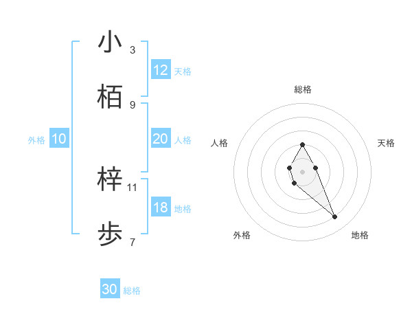 小栢 梓歩さんの天格は12画の1点!