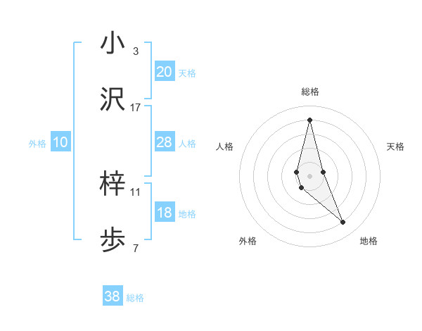 小沢 梓歩さんを姓名の画数から五運を鑑定