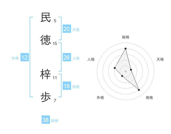 民徳 梓歩さんを姓名の画数から五運を鑑定