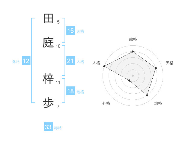 田庭 梓歩さんの総格は33画の4点!