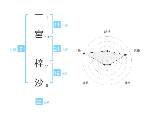 一宮 梓沙さんの天格は11画の4点!