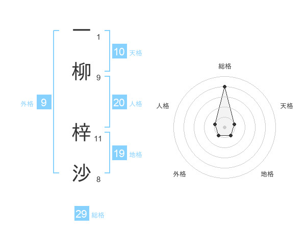 一柳 梓沙さんを姓名の画数から五運を鑑定