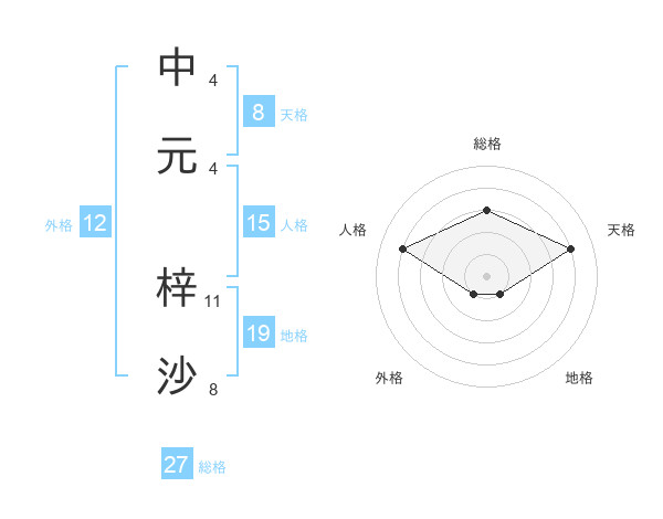 中元 梓沙さんの天格は8画の4点!