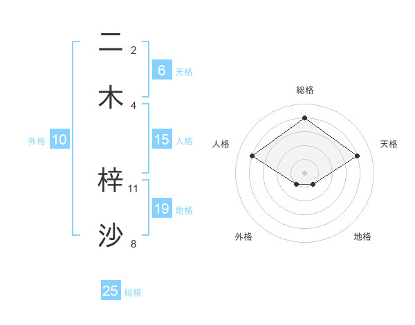 二木 梓沙さんを姓名の画数から五運を鑑定