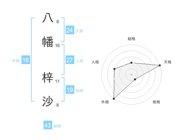 八幡 梓沙さんを姓名の画数から五運を鑑定