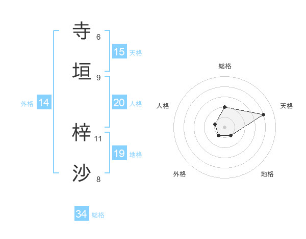 寺垣 梓沙さんを姓名の画数から五運を鑑定