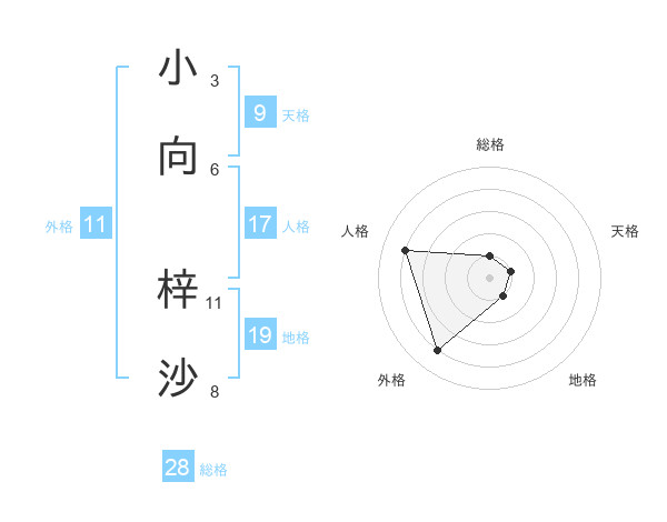 小向 梓沙さんの総格は28画の1点!