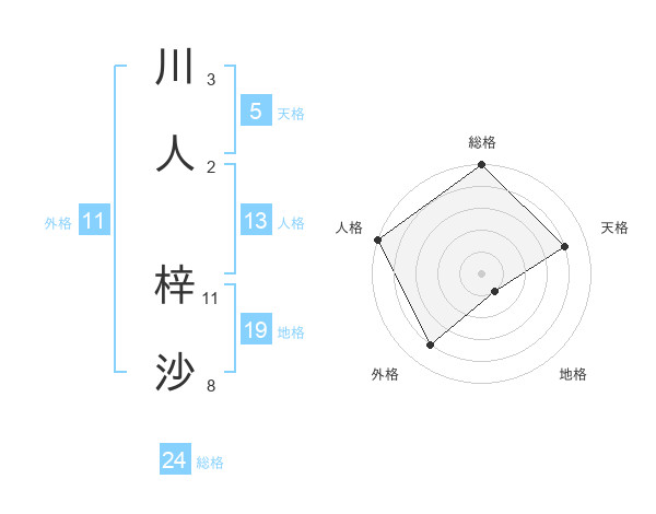 川人 梓沙さんの天格は5画の4点!