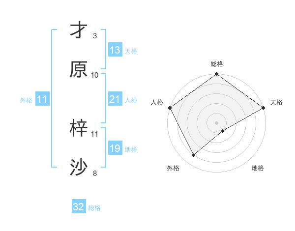 才原 梓沙さんの天格は13画の5点!