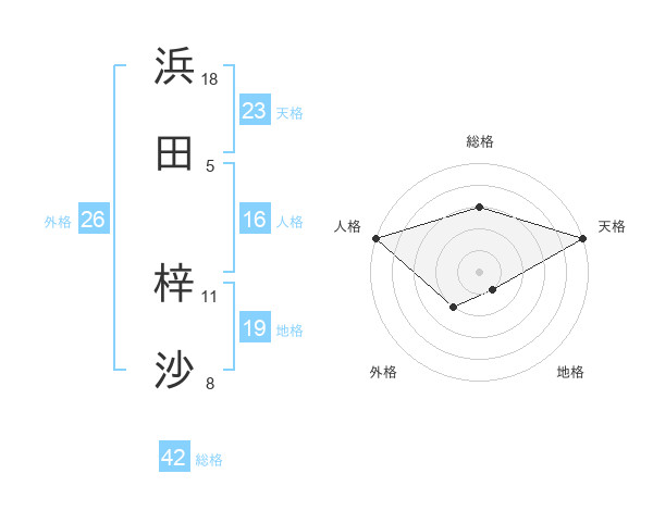 浜田 梓沙さんの天格は23画の5点!