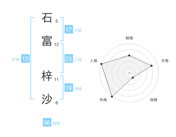 石富 梓沙さんの外格は13画の5点!