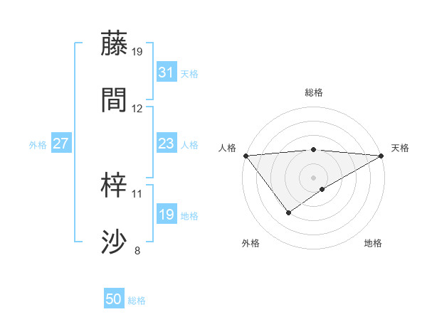 藤間 梓沙さんの天格は31画の5点!