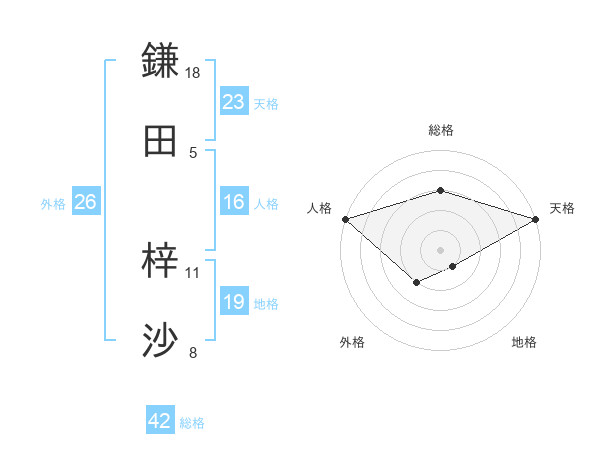 鎌田 梓沙さんを姓名の画数から五運を鑑定