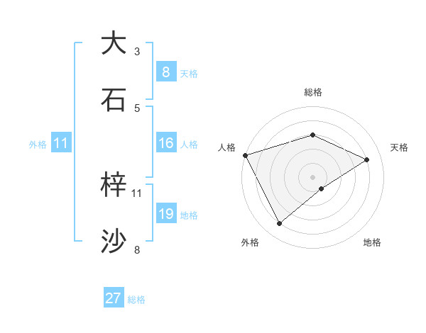 大石 梓沙さんの総格は27画の3点!