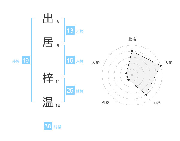 出居 梓温さんの総格は38画の4点!
